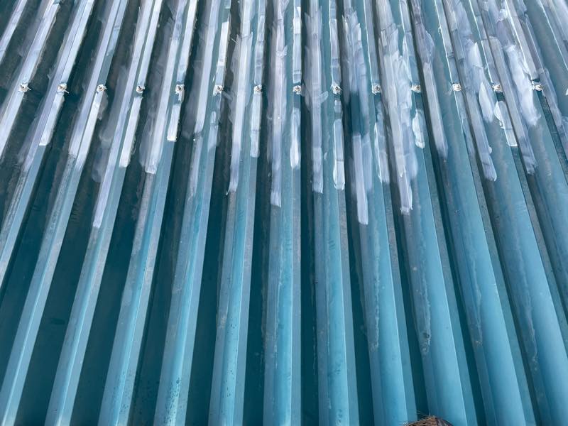 工房の建物の屋根は一般的な折板屋根です。厚みは0.6mmなのですが、規則的に折ってあってとても丈夫。