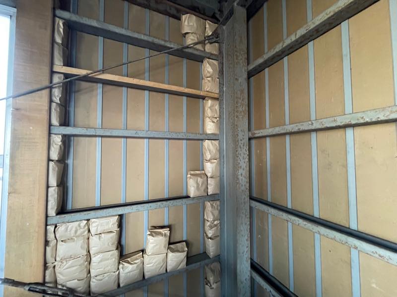 断熱材を紙袋に小分けにして壁に置いてゆく。地味に時間がかかりますが、しっかりと断熱できていると思います。