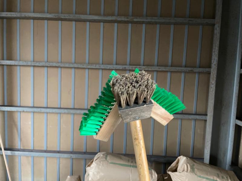 これは折板屋根を掃除するために作った魔改造デッキブラシ。これがあると屋根の汚れが非常に楽に落ちます。